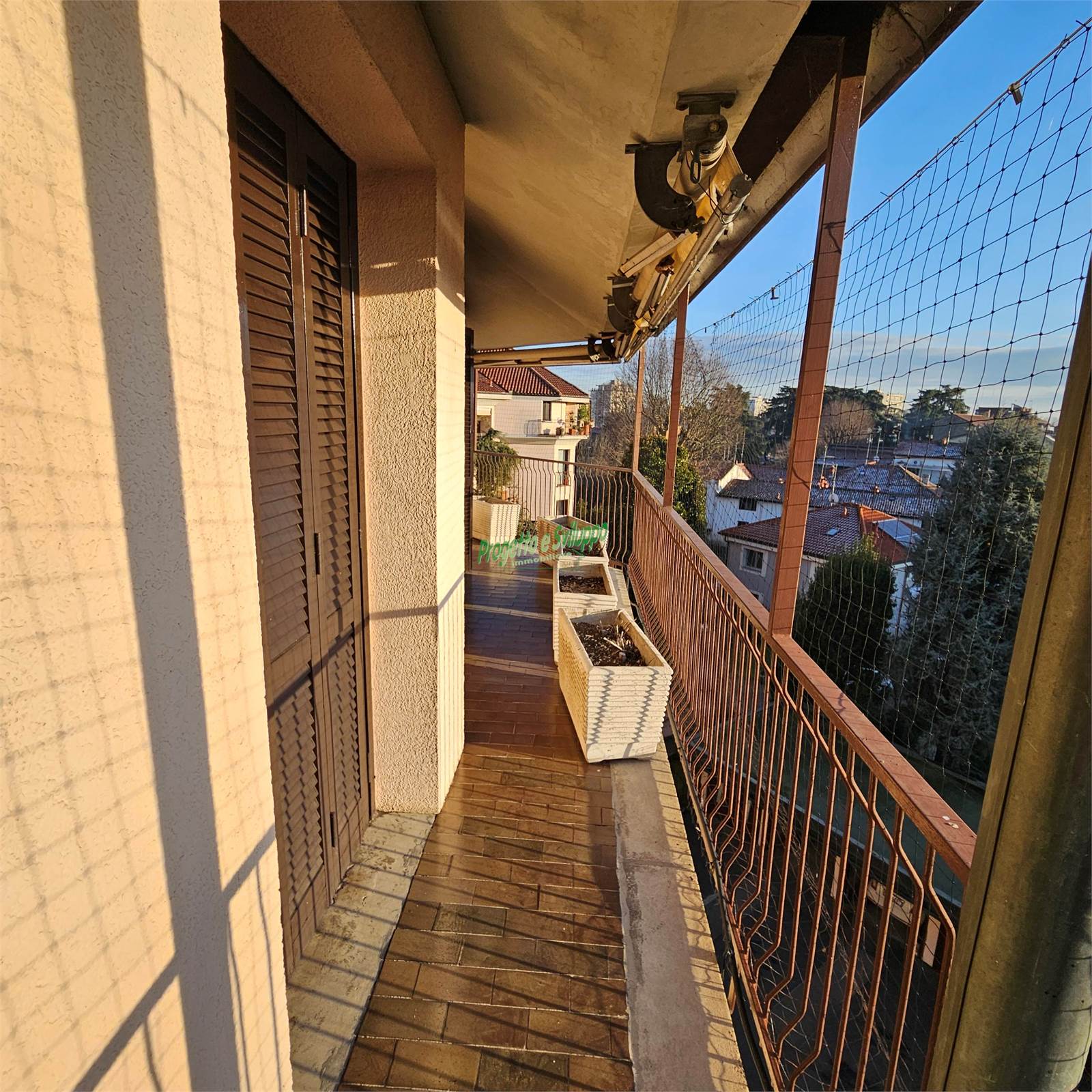 L’abitazione di 120 mq c.ca e' così composta: soggiorno, cucina abitabile, tre camere da letto, due bagni e un soppalco che sembra galleggiare sulla doppia altezza del living. Come un abbraccio continuo, terrazzi perimetrali circondano l’intera proprietà, regalando scorci sempre diversi: il verde del parco da un lato, i campanili e i tetti del centro storico dall’altro, in un dialogo costante tra natura e città.