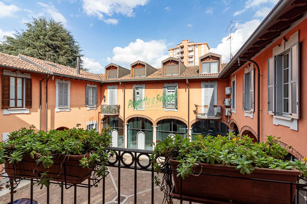 Vivere a Palazzo Pionnio significa abitare un pezzo di storia di Abbiategrasso. Questa dimora nobiliare, risalente al 1453 e citata con onore nel Catasto di Maria Teresa d'Austria, accoglie i suoi residenti in un contesto di raro prestigio: un elegante cortile centrale scandito da colonne in granito e facciate adornate da affreschi e modanature che rievocano atmosfere d’altri tempi. È qui, protetta da mura intrise di storia ma completamente rigenerata secondo i più moderni standard abitativi, che si trova questa splendida residenza.
