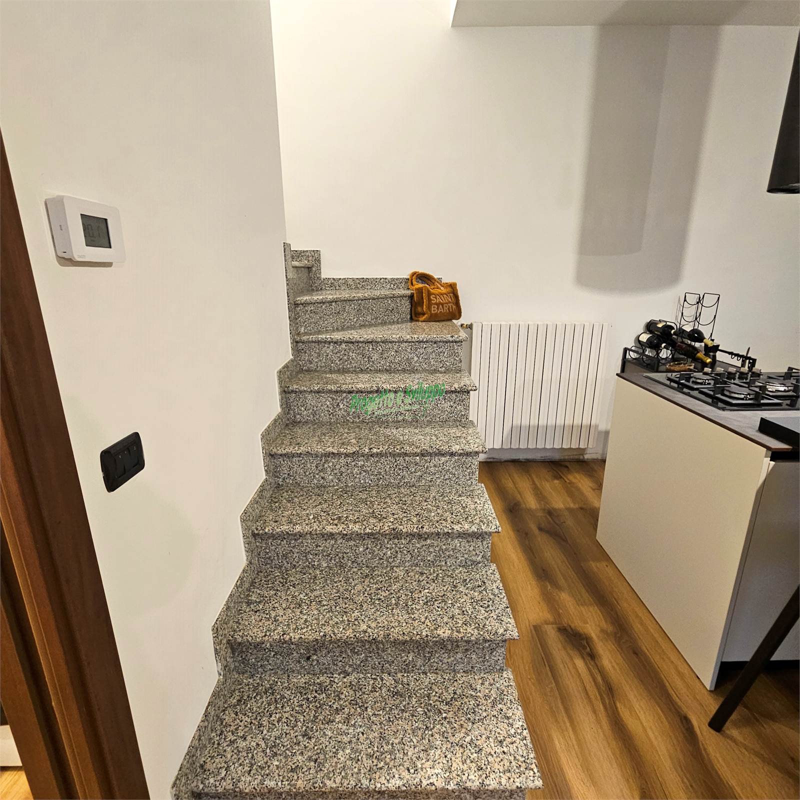 L’ingresso si apre su un ampio e luminoso soggiorno open-space, dove il calore del parquet guida lo sguardo verso una cucina di design impeccabile. Questo spazio, pensato per chi ama l’estetica moderna e pulita, è dominato da un’isola centrale con piano cottura professionale e cappa sospesa, offrendo una soluzione "chiavi in mano" raffinata e pronta da vivere grazie agli arredi di alta gamma inclusi nella vendita. Per i momenti di relax, un balcone privato si affaccia internamente sulla corte storica, garantendo una riservatezza assoluta nel cuore della città. La praticità del piano è completata da un locale lavanderia e dalla predisposizione per un secondo bagno di servizio.