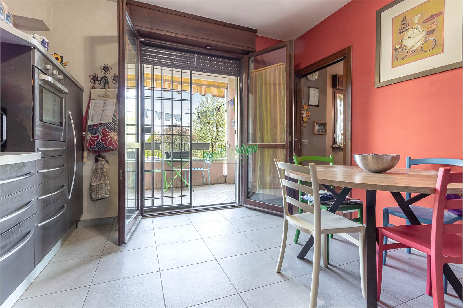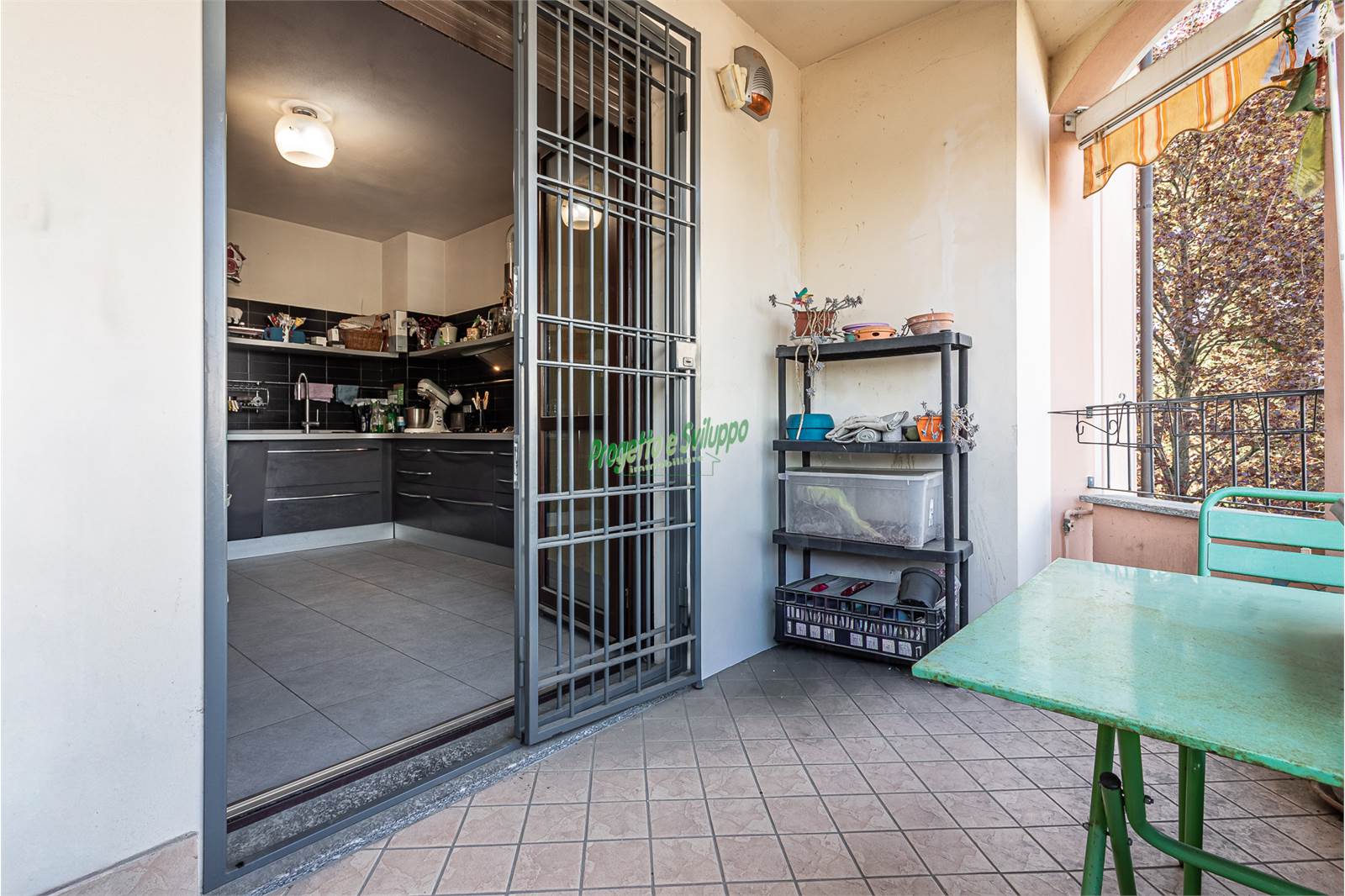 La cucina, separata dal living, è spaziosa e perfettamente abitabile: una parete attrezzata angolare si integra con la zona pranzo, creando un ambiente funzionale e accogliente. Da qui si accede a un piacevole terrazzo coperto, ideale per godersi momenti all’aperto in ogni stagione.