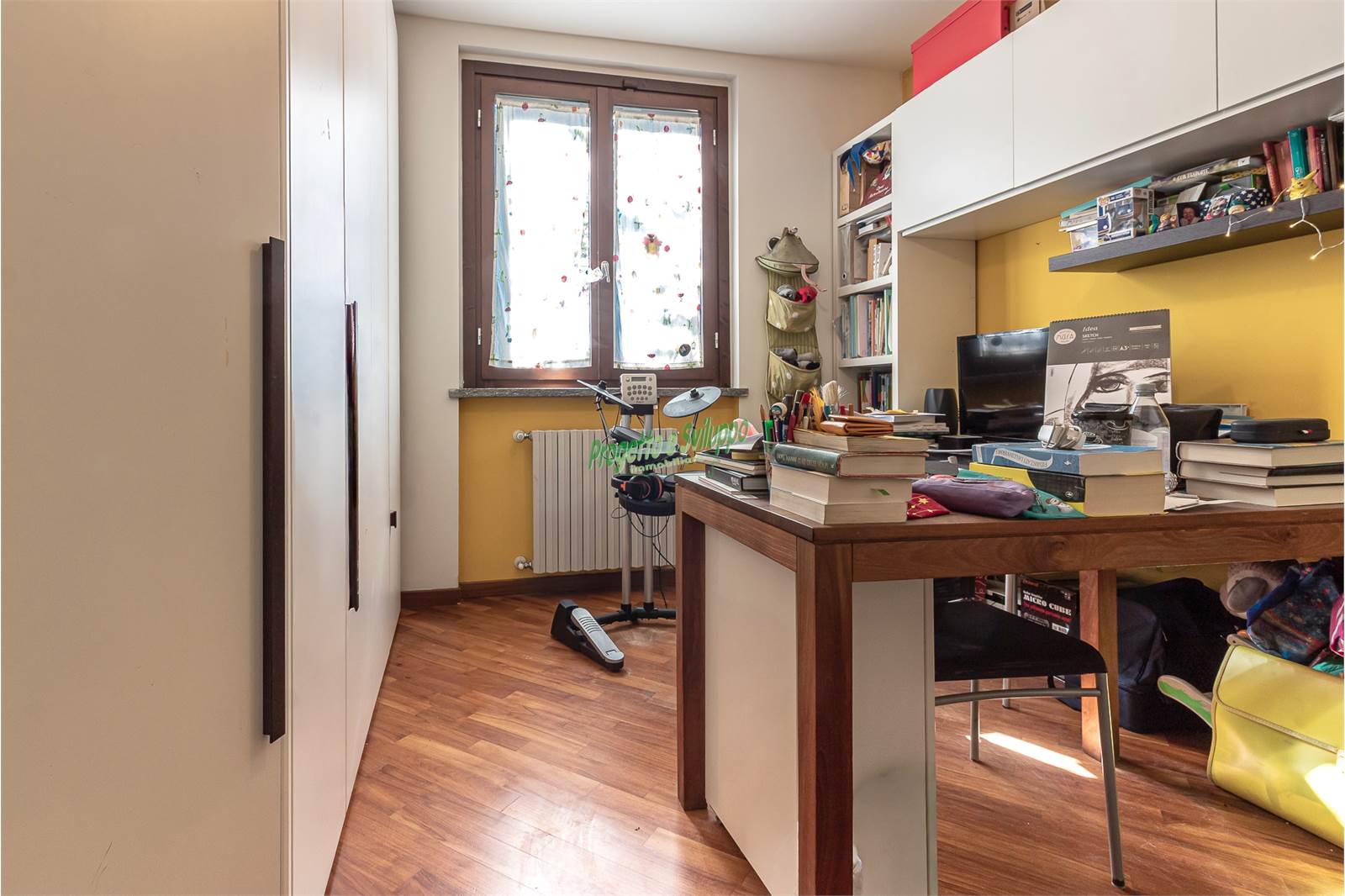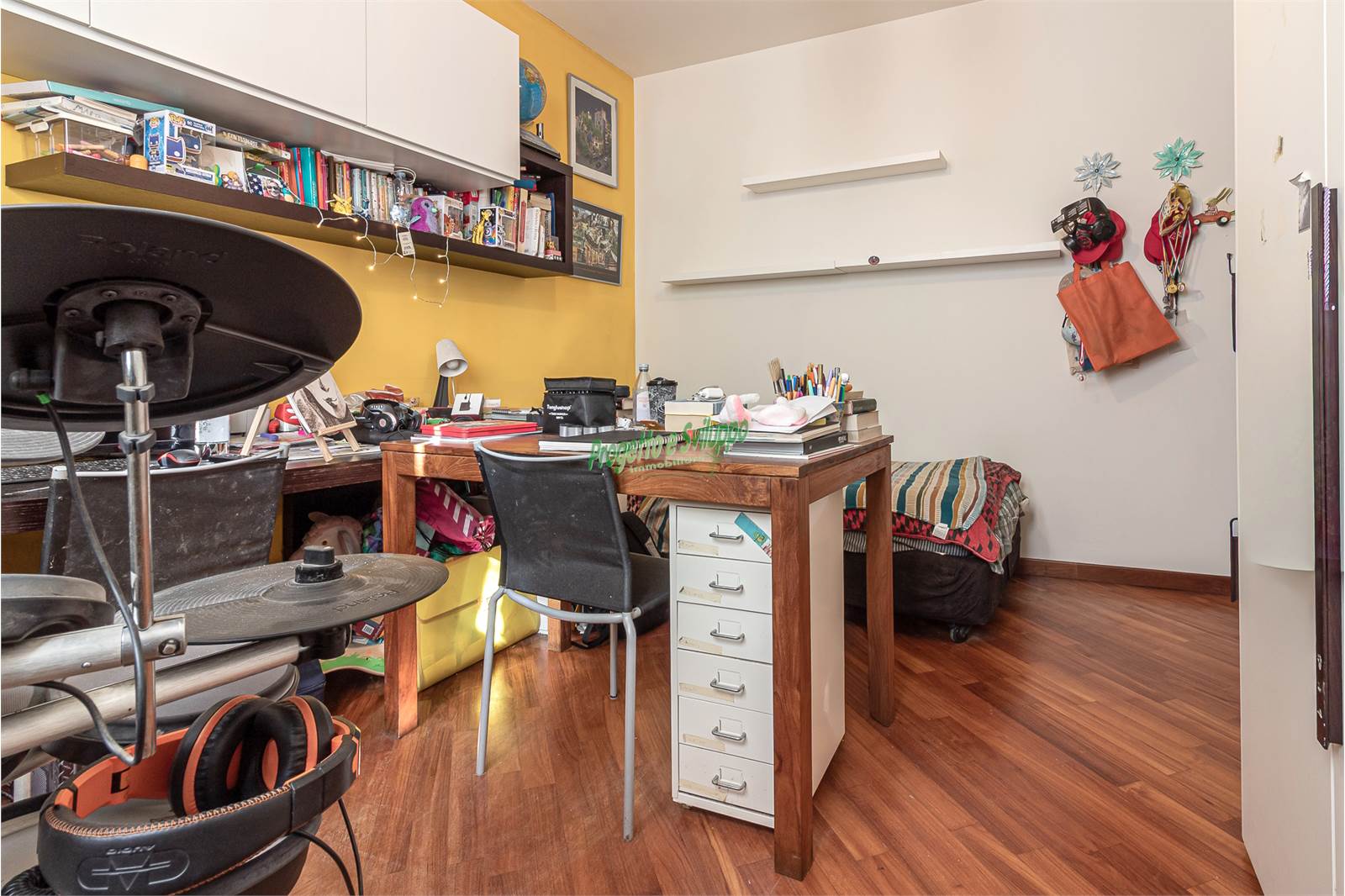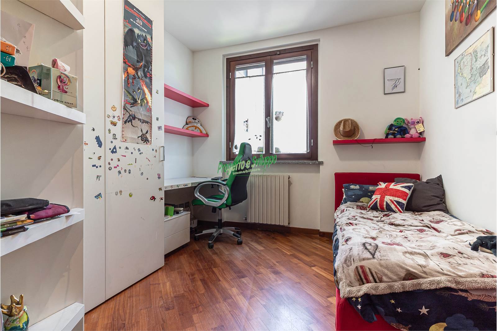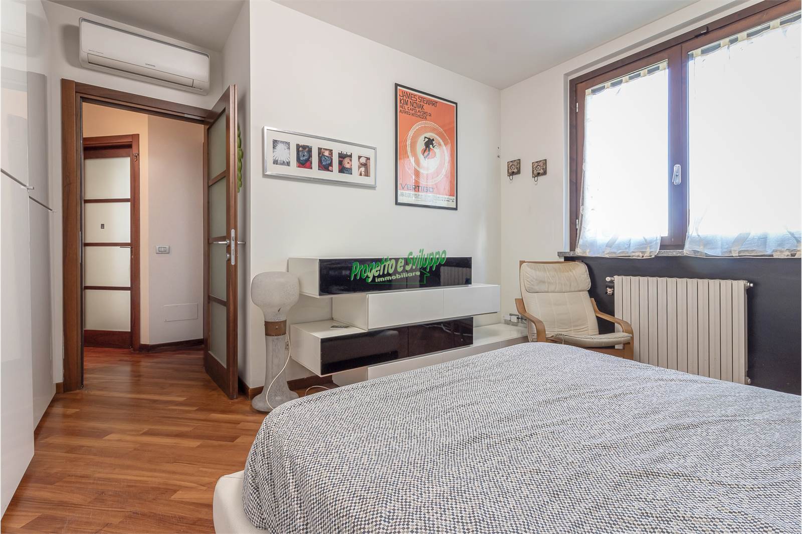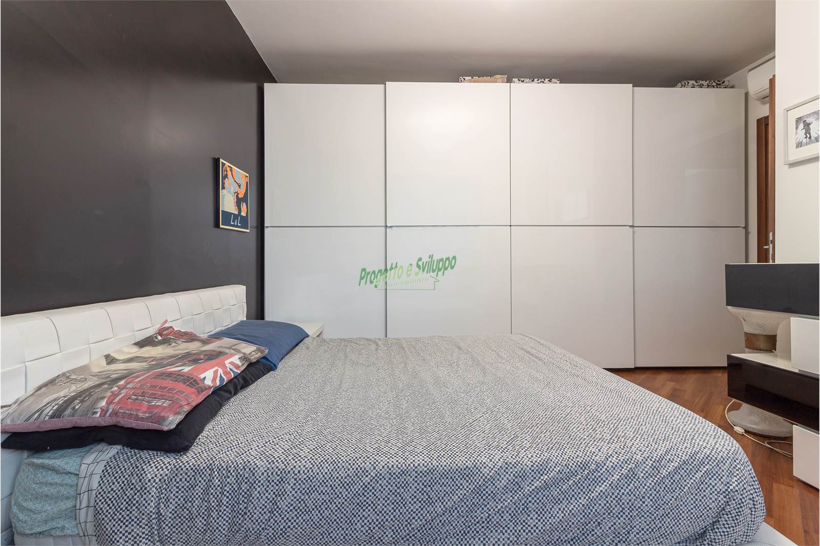 La distribuzione degli ambienti è razionale e studiata per garantire comfort e privacy. Un ampio disimpegno conduce alla zona notte, composta da due camere matrimoniali, una camera singola e due bagni, uno dotato di doccia e l’altro di vasca. Ogni spazio è stato valorizzato con attenzione, come dimostra l’armadiatura su misura nel disimpegno, perfetta per ottimizzare l’organizzazione della casa.