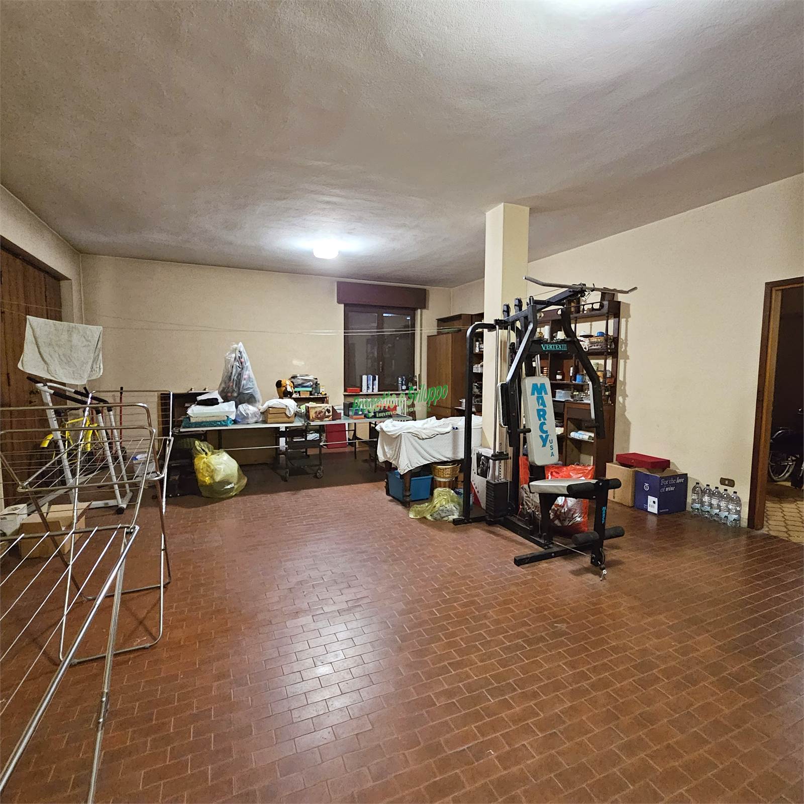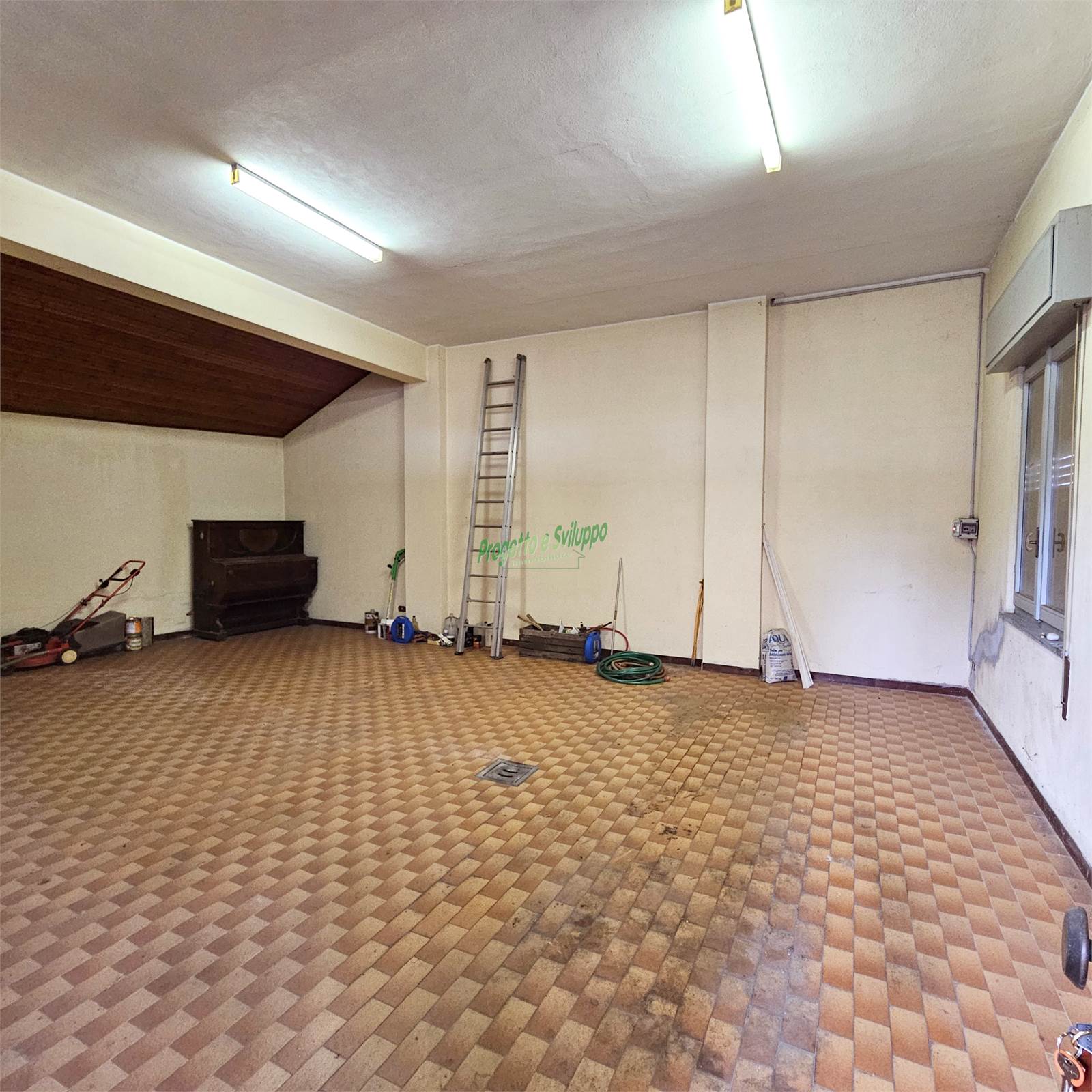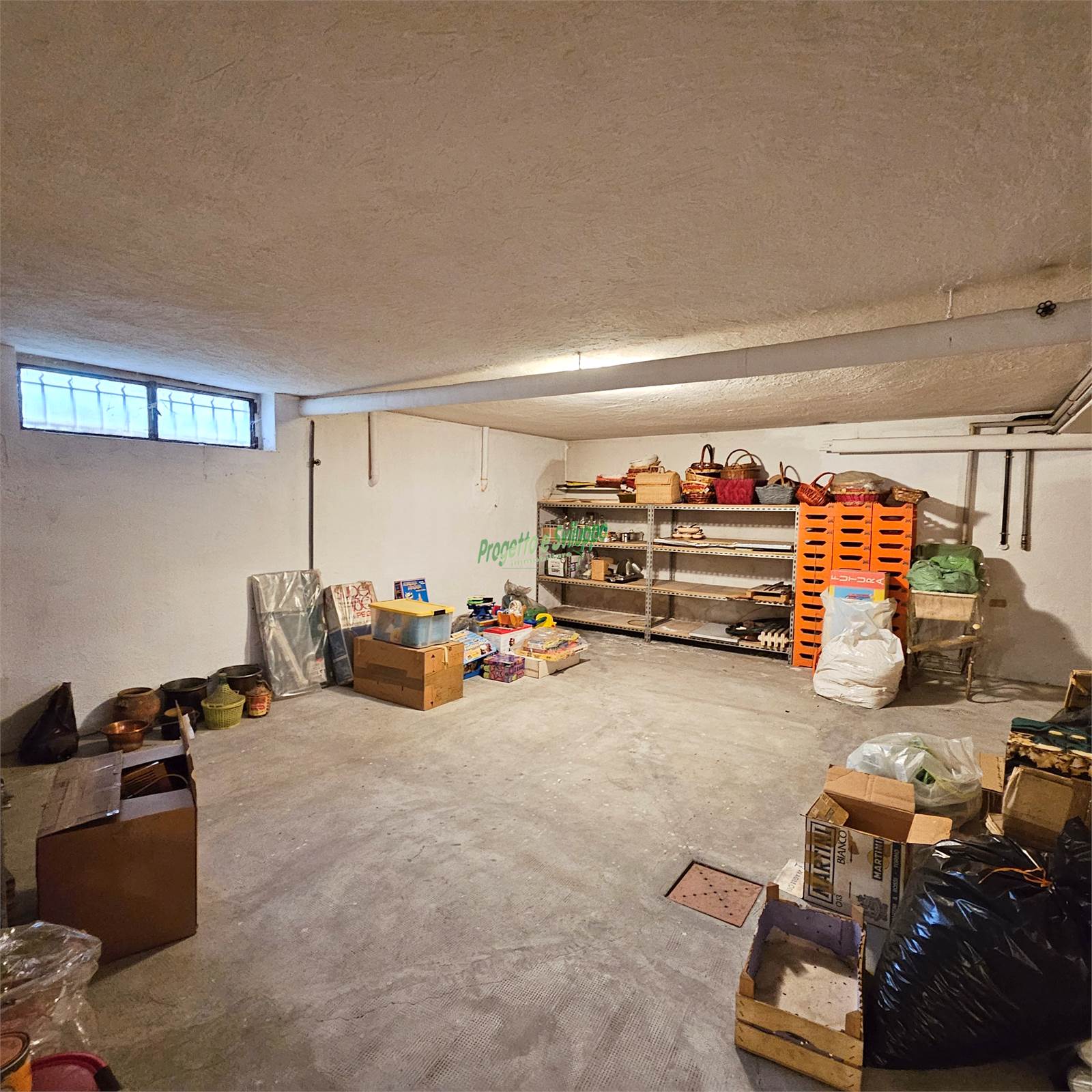 Il piano interrato ospita un’ampia cantina con vari locali accessori, locale tecnico e ripostiglio. Completano la proprietà un box doppio di circa 62 mq con ottime altezze, dotato di impianto elettrico e di un ulteriore bagno di servizio.