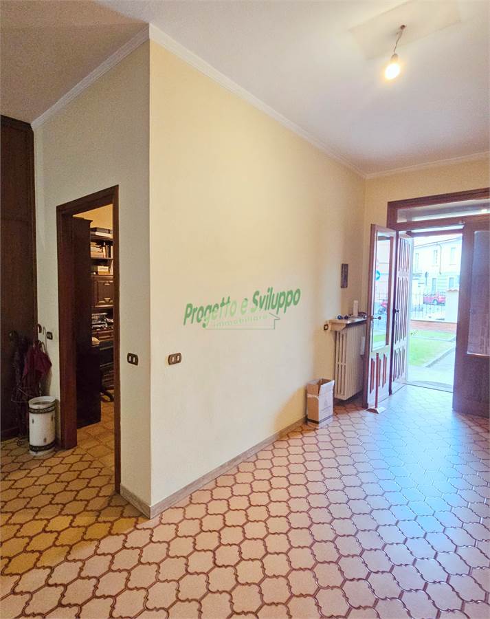 Al piano terra si sviluppa un accogliente appartamento composto da ingresso, soggiorno con gradevole affaccio sul verde, ampia cucina abitabile, studio, camera matrimoniale e bagno finestrato.