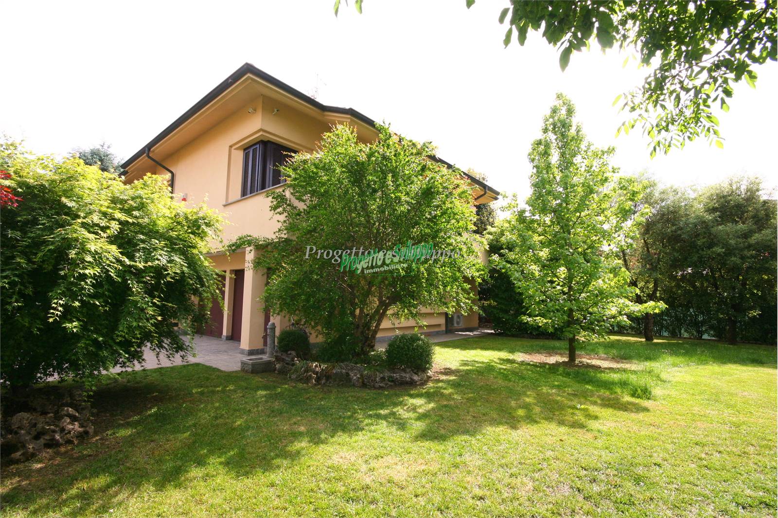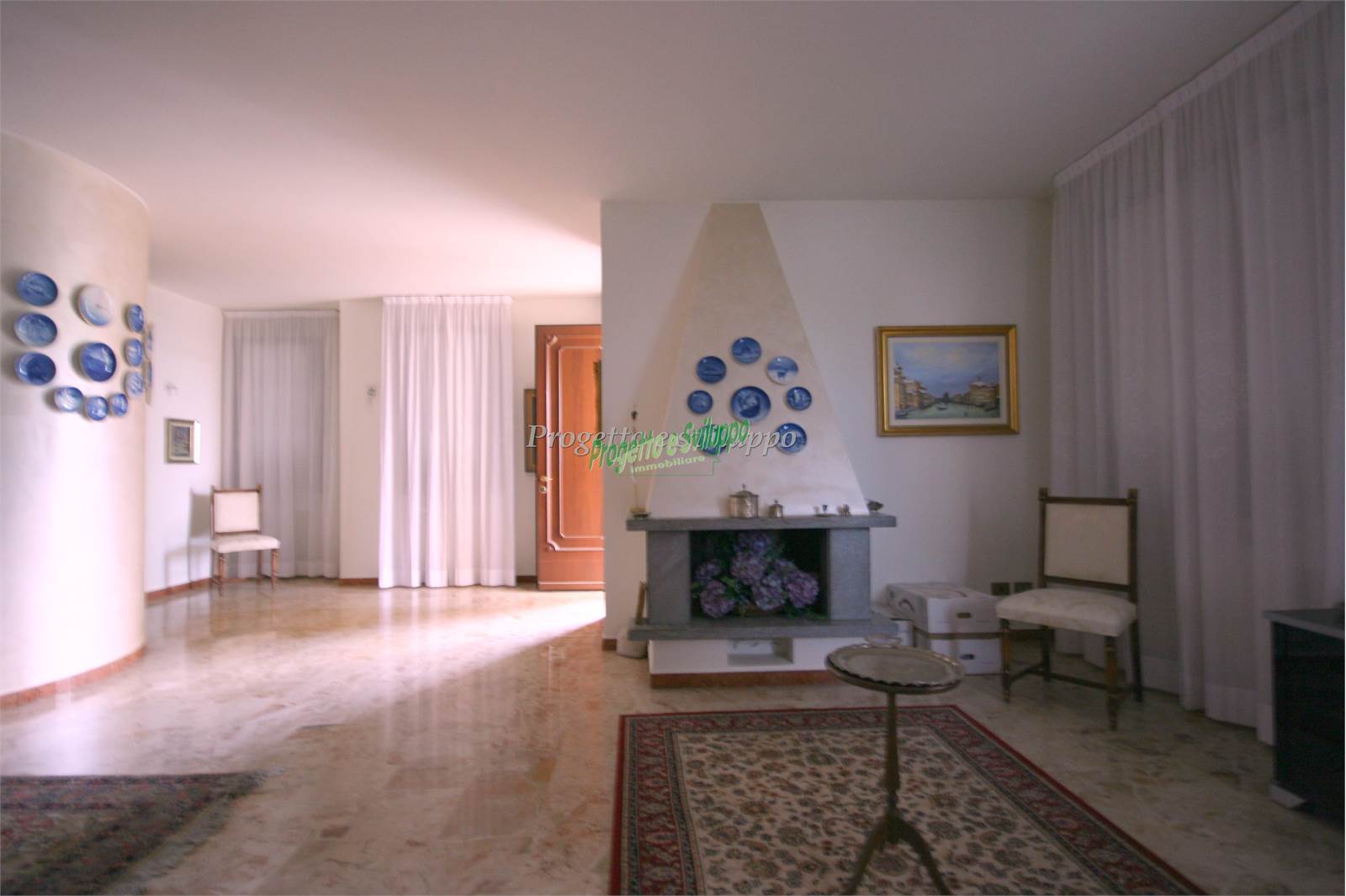 In zona residenziale di sole ville al contempo comoda con il centro cittadino e i servizi primari proponiamo interessante soluzione abitativa indipendente ideale per due nuclei famigliari, libera su quattro lati immersa nel verde e nella tranquillità del giardino privato di circa 1000 mq piantumato con essenze pregiate ed alberi ad alto fusto, La villa si sviluppa su 4 livelli di circa 140 mq l’uno collegati da scala interna. Il piano seminterrato completamente rifinito è composto da quattro ampi locali e dalla centrale termica, accessibile sia dalla scala interna che da ingresso indipendente dal giardino, il piano terra è composto da una prima zona abitativa comprendente i due ingressi soggiorno ampia cucina abitabile due camere bagno ed il box doppio, il primo piano dotato di ampie balconate è composto da 2 ingressi salone con camino due camere studio o terza camera cucina abitabile doppi servizi il secondo piano attualmente inutilizzato ma coibentato ed isolato si presenta come un grande open-space da adattare eventualmente in base alle proprie esigenze. Le condizioni di manutenzione sono buone anche se un’eventuale personalizzazione soprattutto nei rivestimenti di bagni e cucine può essere valutata