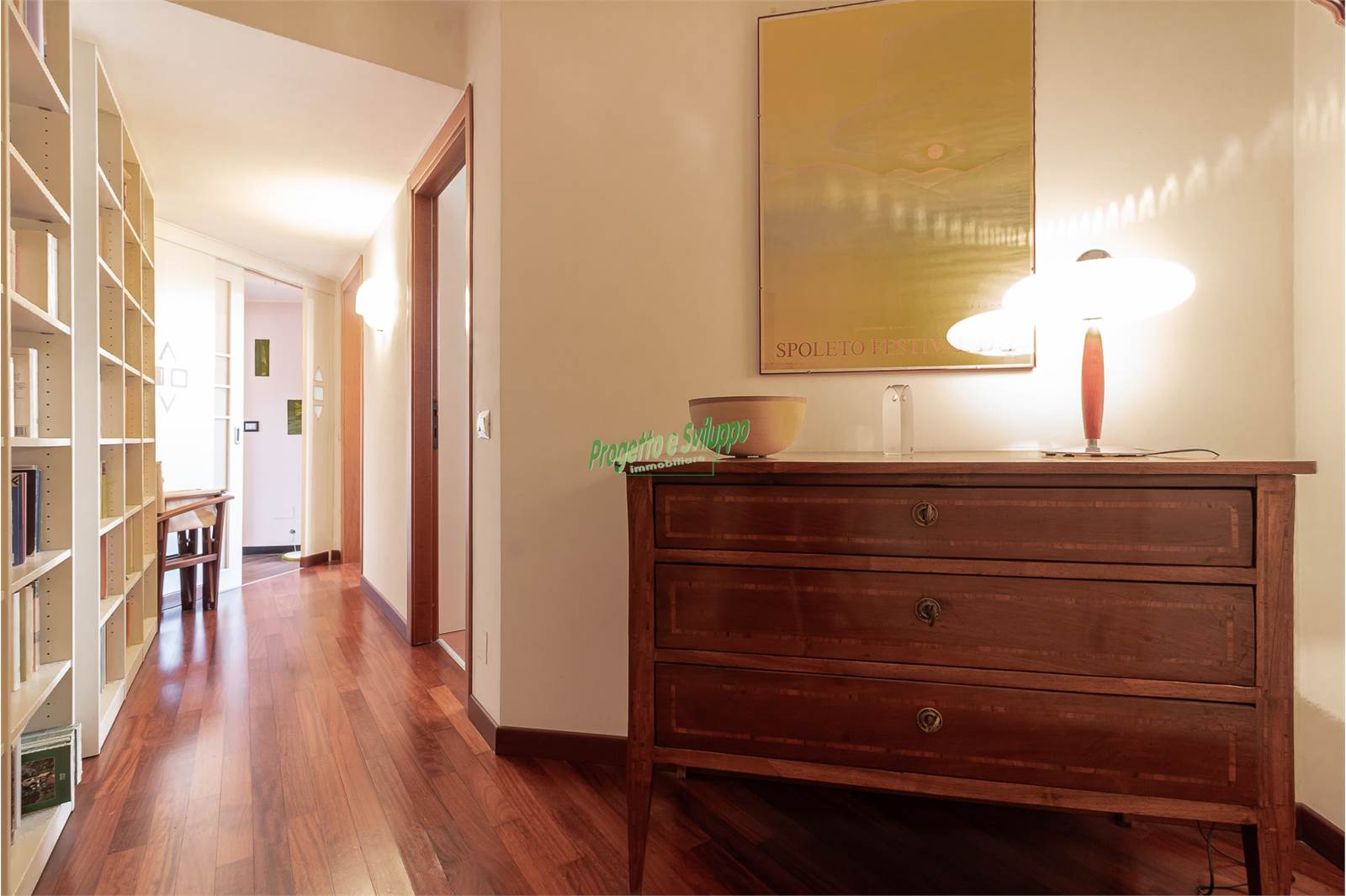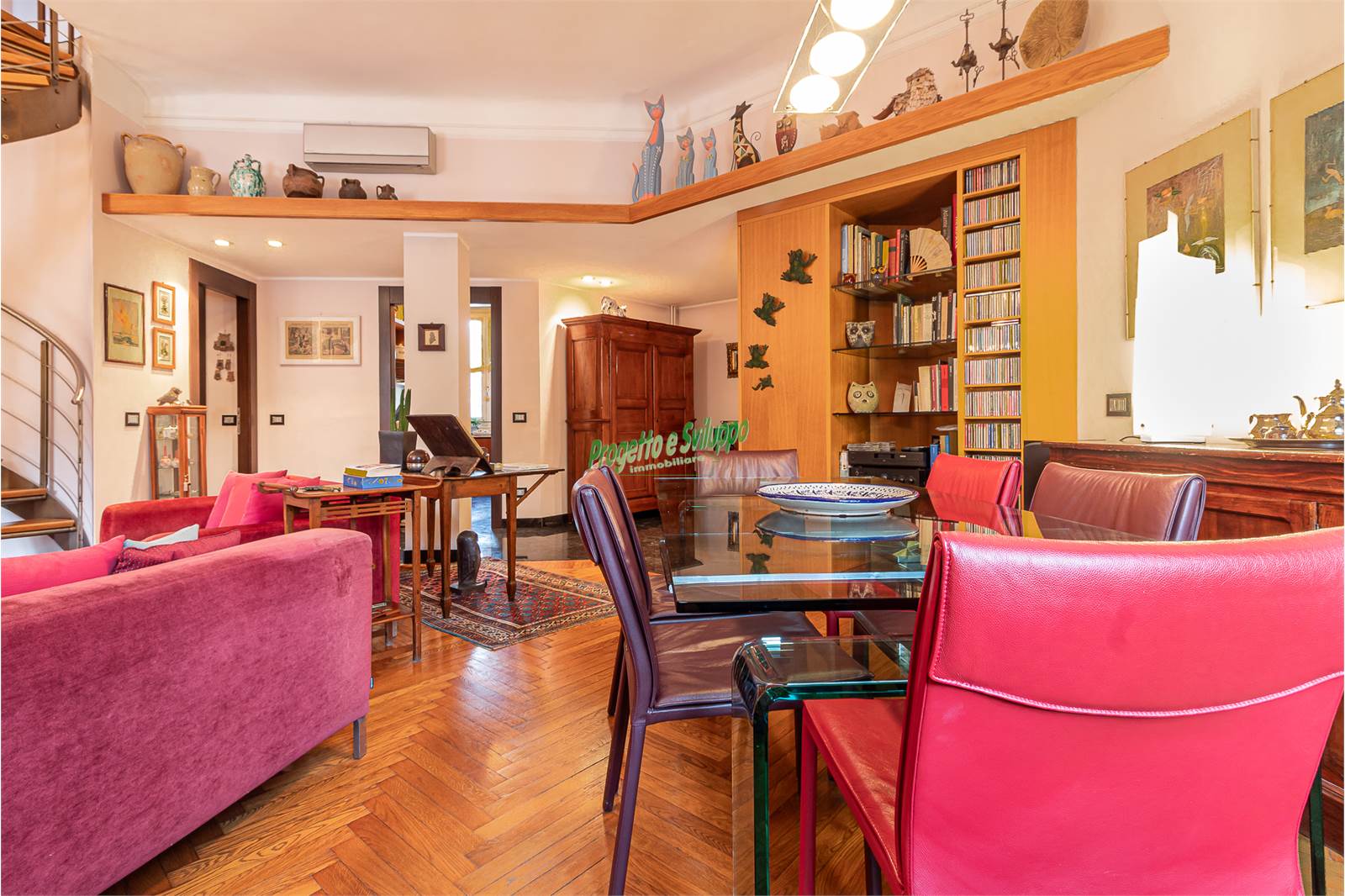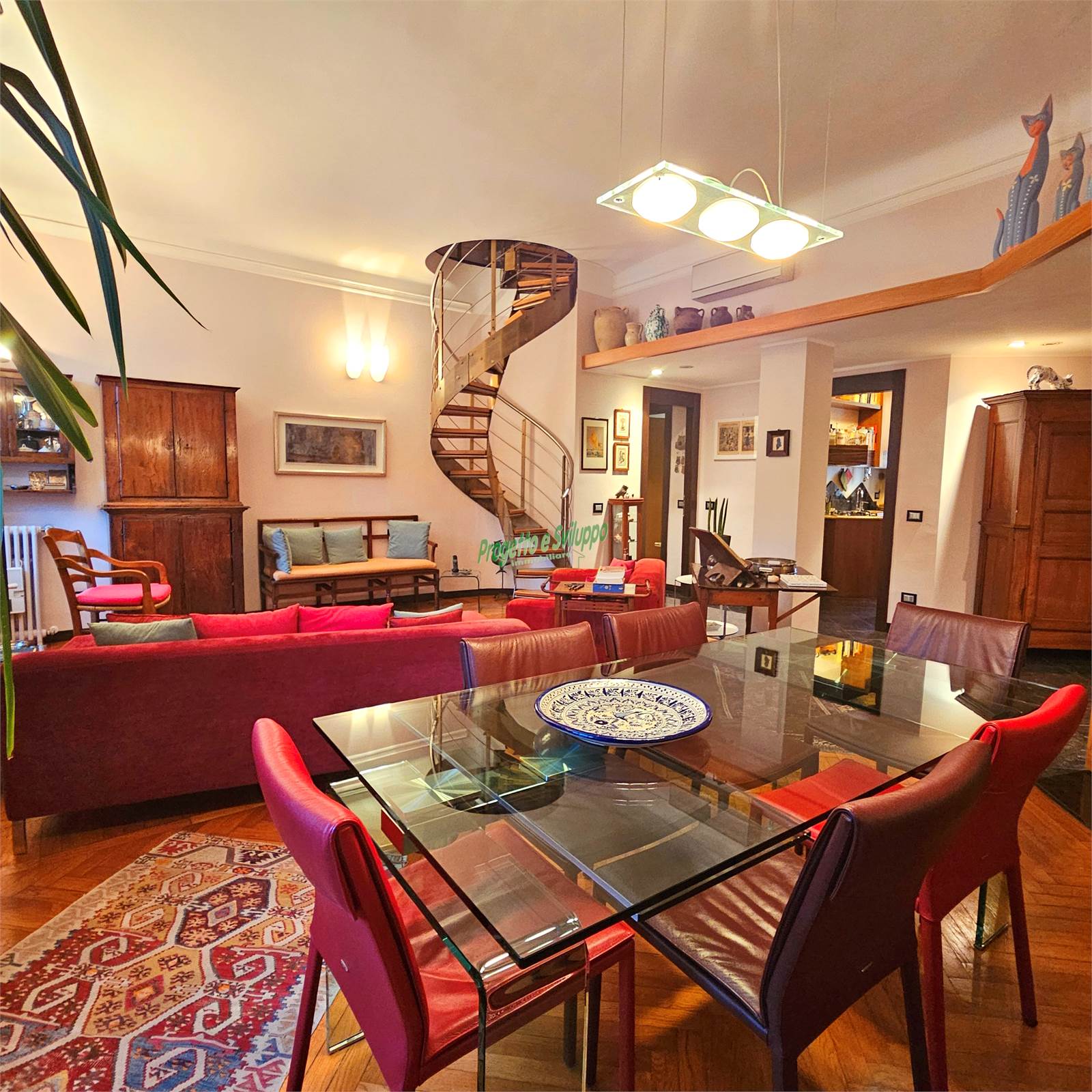 Le finiture riflettono una scelta attenta e di qualità: marmo nelle zona living e nel bagno del piano terzo, parquet nel living e nelle camere, infissi in legno con triplo vetro sostituiti nel 2013, tapparelle motorizzate di sicurezza, impianto di aria condizionata su entrambi i livelli. Il riscaldamento è centralizzato ma contabilizzato con contacalorie, permettendo una gestione autonoma dei consumi di conseguenza le spese condominiali indicate s'intendono comprensive della quota di consumo del riscaldamento. Completa la proprietà una cantina al piano interrato. L’immobile sarà libero a fine ottobre 2026.