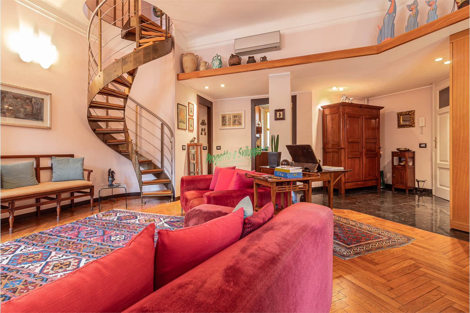 La proprietà occupa il terzo e quarto, ultimo piano, di un signorile stabile d’epoca milanese dei primi del Novecento, perfettamente mantenuto nel tempo. Il tetto è stato rifatto, è presente l’ascensore e il servizio di portineria è attivo mezza giornata. Le parti comuni curate e l’architettura originale conservano intatto il fascino dell’epoca, regalando un contesto di eleganza sobria e senza tempo.