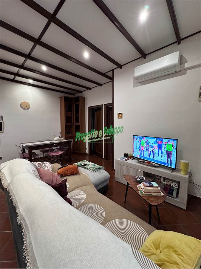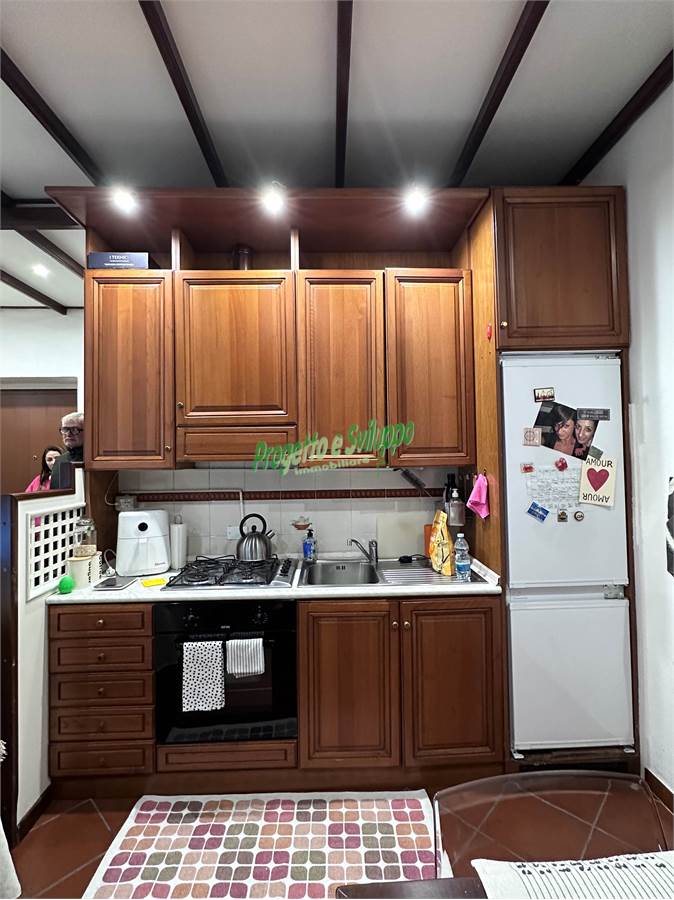 L'ingresso sfocia sul salotto e nel medesimo ambiente troviamo la cucina non direttamente visibile dall'ingresso in quanto opportunamente dislocata all'interno del locale dal quale si accede anche sul balconcino. Una camera matrimoniale, un ripostiglio e un bagno completano la soluzione.